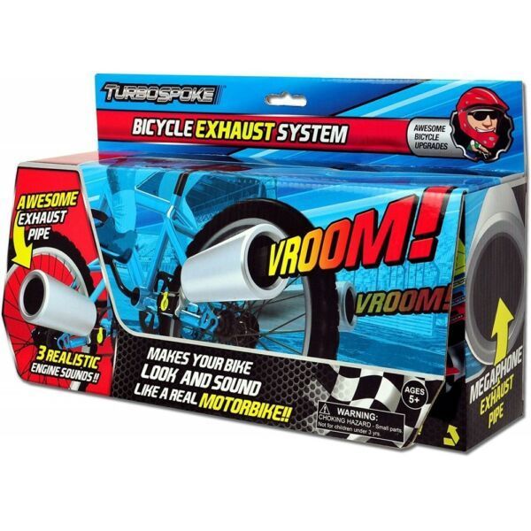 Suna ca un motor dar de fapt este bicicleta ta. Noroc cu Turbospoke Aceasta jucarie distractiva este dotata cu o teava de esapament reala pentru megafoane care face ca orice bicicleta sa sune ca o motocicleta reala pe masura ce va plimbati putin Sistem de evacuare pentru biciclete. Universal potrivit pentru orice bicicleta de peste 35 cm. Setul include teava de esapament megafon motocarduri si autocolante. Se potriveste usor in doar 60 de secunde. Poate fi montat in ambele parti ale bicicletei. Atentie Contraindicat copiilor mai mici de 3 ani. Jucaria produsul poate contine piese mici care se pot inghiti sau inhala existand pericolul de sufocare. Nu lasati ambalajele jucariilor produselor la indemana copiilor. Indepartati orice ambalaj al jucariei produsului inainte de a da jucaria produsul copilului. Va rugam sa supravegheati copilul in timp ce se joaca foloseste acest produs. Pastrati instructiunile si etichetele pentru referinte viitoare. Pastrati jucaria produsul departe de foc feriti jucaria produsul de temperaturi ridicate si umiditate.Specificatii