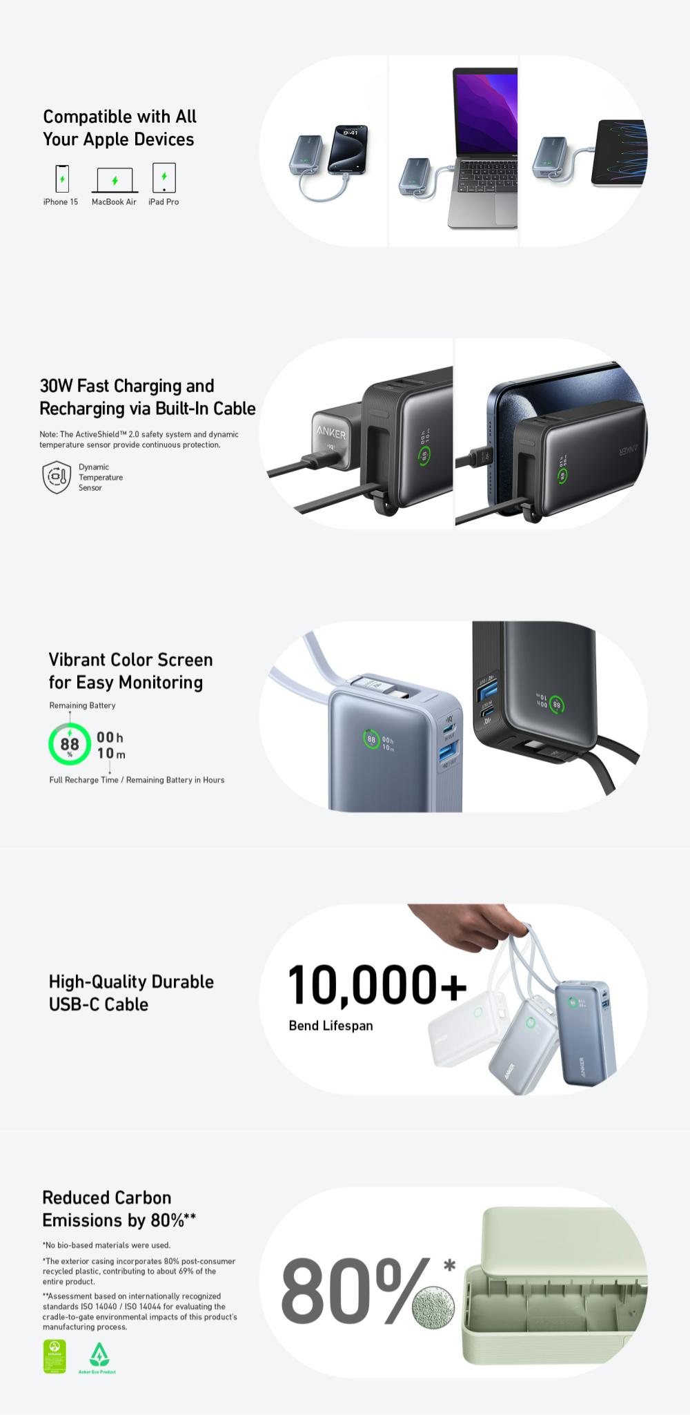 Folositi cablul USB-C incorporat pentru a va incarca smartphone-urile, tabletele si laptopurile, precum si pentru a reincarca bateria externa in sine - indeplineste toate nevoile dvs. de incarcare!