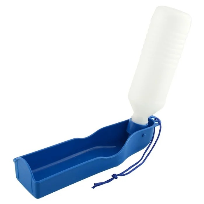 Recipientul este prevazut si cu un vas din care cainele poate bea apa foarte usor. Adapatorul este disponibil in diverse culori.
