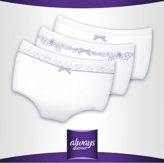 Lenjeria pentru incontinenta urinara pentru femei Always Discreet este confectionata dintr-un material delicat, asemanator bumbacului, si are o banda pentru talie moale care urmeaza formele corpului dvs. pentru confort suplimentar.