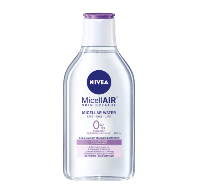 Apa micelara NIVEA 3in1 pentru ten sensibil curata delicat pielea, indeparteaza machiajul fetei si al ochilor si hidrateaza dintr-o singura miscare.