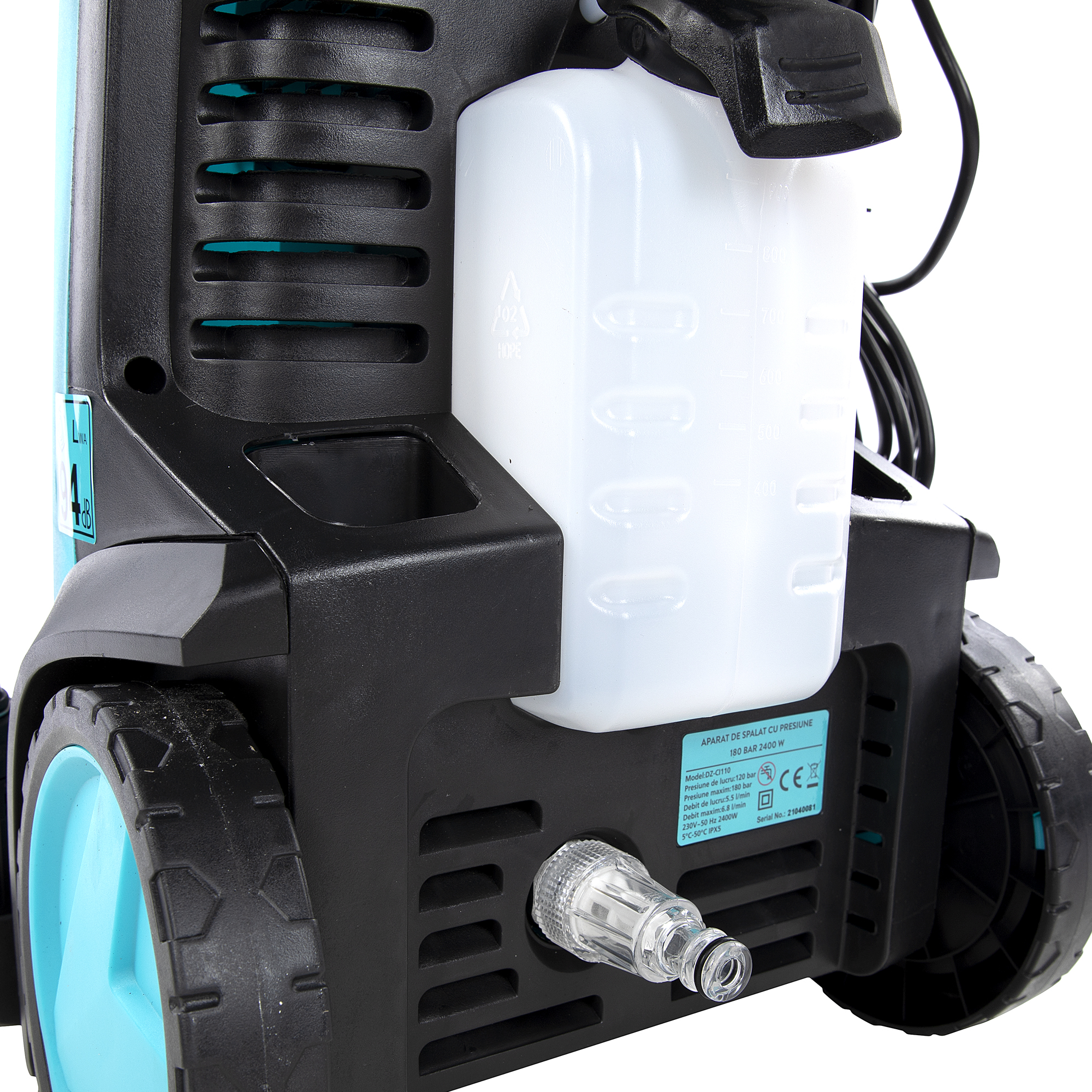 Aparatul de curatat sub presiune 180bar, 2400W, Detoolz DZ-CI110 este echipat cu un motor cu puterea de 2400 W. Presiune maxima de 180 de bari pemite un jet puternic de apa pentru a indeparta murdaria aspra. Aparatul de curatat sub presiune Detoolz DZ-CI110 este ideal pentru curatarea teraselor, a curtilor, a marginilor piscinei, a balcoanelor si a suprafetelor din lemn.