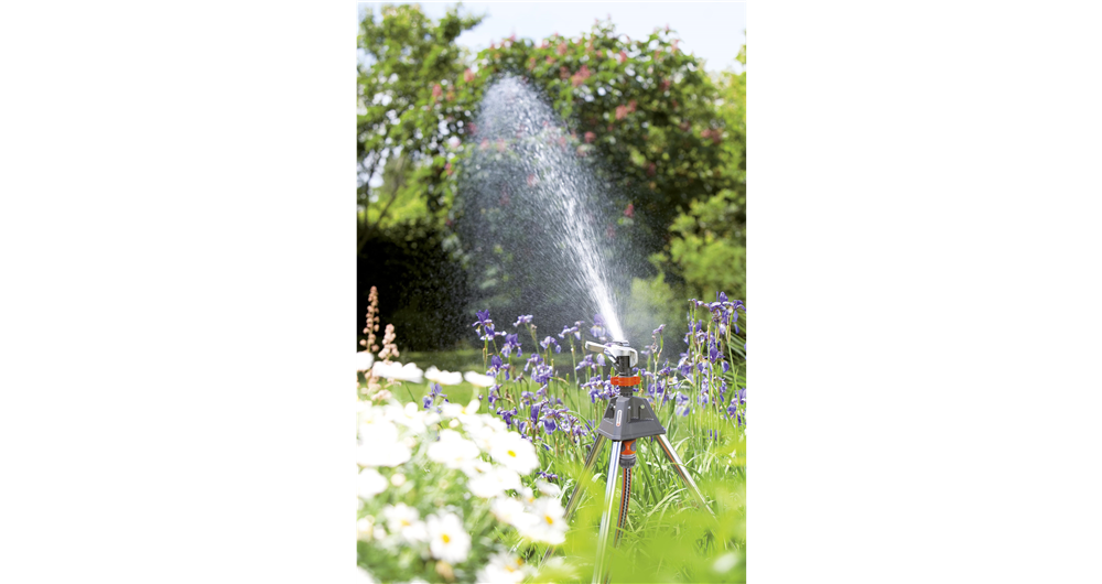 Aspersorul pulsator pentru plante inalte cu trepied pliabil este un ajutor de nadejde cand trebuie irigate plantele inalte. Montat, are aprox. 100 cm inaltime. Filetul mama/tata pe care este insurubat capul aspersorului are un diametru de 21 mm (G 1/2). Capul aspersorului este fabricat dintr-o combinatie robusta de metal si plastic. Astfel, este foarte stabil. Cu ajutorul inelelor de reglare, puteti seta cu usurinta sectorul care va fi udat, selectand o raza de actiune de la 25° la 360°. Sectorul selectat poate fi vizualizat oricand datorita acestor inele de reglare. Duza din alama de inalta precizie asigura o distribuire precisa a apei. Puteti seta raza de actiune cu ajutorul butonului rotativ mare, usor de utilizat. Aceasta poate fi setata de la 5 m la maxim 12,5 m. Poate fi irigata o suprafata de la 75 m la maxim 490 mp. Plantele inalte pot fi irigate fara probleme.Specificatii