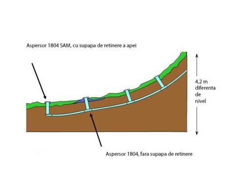 Jetul de apă controlat la coborârea aspersorului îl curăță de nisip, asfel asigurând o funcționare impecabilă pentru orice tip de sol