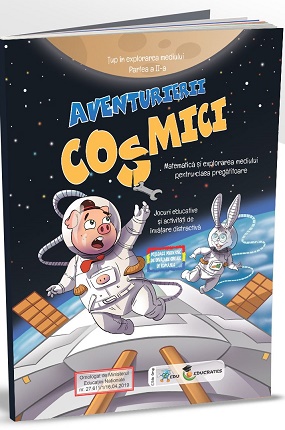 Pogo si curiosul Tup sunt ”Aventurierii cosmici” (matematica si explorarea mediului pentru clasa pregatitoare). Ei vor porni intr-o aventura spatiala plina de umor si peripetii. Pachetul educational este format dintr-o aplicatie educational si o revista (64 de pagini color). Intreg continutul educational ruleaza pe tableta sau smartphone (Android, versiunea minima 4. 1) si poate fi vizualizat GRATUIT introducand codul de acces din revista. Dorind sa fie primul iepure care calatoreste in spatiu, Tup il atrage pe Pogo intr-o aventura cosmica plina de neprevazut. Cei doi eroi vor explora Luna, apoi vor calatori pana la Soare. De aici vor poposi tocmai pe Neptun, planeta inghetata si, intr-un final, vor ajunge la mult indragita lor ferma. Aplicatia contine 24 de animatii si 20 de jocuri educative si distractive care urmaresc toate continuturile din programa scolara pentru matematica si explorarea mediului - clasa pregatitoare. Si, pentru ca Tup nu rateaza nicio ocazie de a ne impresiona cu stiai ca-urile lui, ne-a pregatit o revista cu 64 de pagini color in care a pus o multime de curiozitati minunat ilustrate. CUPRINS Capitolul 1: La drum, prieteni! Numerele naturale 0-31 (recunoastere, formare, comparare, ordonare) Pamantul (apa in natura - precipitatii, rauri, lacuri, mare) Capitolul 2: Spre racheta Adunarea si scaderea in concentrul 0-31 fara trecere peste ordin Fenomene ale naturii (ploaie, ninsoare, vant, fulger, tunet) Capitolul 3: Aventuri pe Luna Adunarea si scaderea in concentrul 0-31 cu trecere peste ordin Universul (Pamantul, Soarele, Luna) Capitolul 4: O calatorie pana la Soare Figuri plane (patrat, dreptunghi, triunghi, cerc - denumire, conturare) Sistemul Solar Capitolul 5: Aterizare cu surprize Corpuri 3D (cub, cuboid, sfera - denumire) Forte si miscare Electricitate. Unde si vibratiiSpecificatii