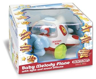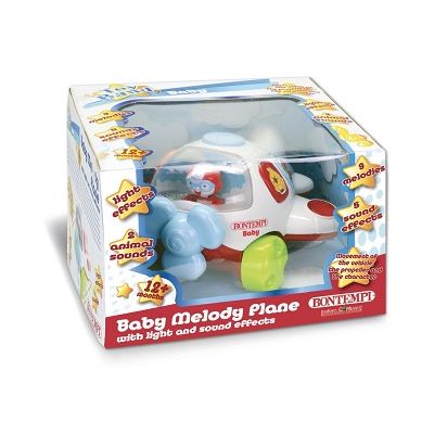 Avionul muzical. 7 melodii preinregistrate. Efecte sonore. Imita sunetele pasarilor si ale cainilor. 5 efecte sonore. Efecte luminoase. Alimentare 3 baterii R6 AA 1 5V nu sunt incluse . Dimensiuni 210x210x120 mm. Beneficii familiarizarea cu muzica si ritmul dezvoltarea abilitatilor sociale si cognitive coordonarea miscarilor atentia distributiva. Jucaria produsul poate contine piese mici care se pot inghiti sau inhala existand pericolul de sufocare sau nu este potrivita copiilor mai mici de 3 ani. Nu lasati ambalajele jucariilor produselor la indemana copiilor. Indepartati orice ambalaj al jucariei produsului inainte de a da jucaria produsul copilului. Va rugam sa supravegheati copilul in timp ce se joaca foloseste acest produs. Pastrati instructiunile si etichetele pentru referinte viitoare. Pastrati jucaria produsul departe de foc feriti jucaria produsul de temperaturi ridicate si umiditate.Specificatii