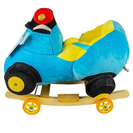 Acest balansoar pentru bebelusi este perfect pentru copilasii care au nevoie de actiune si distractie. Miscarea pendulara a balansoarului linisteste orice bebelas si aduce zambet pe buzele oricarui parinte. Folosirea balansoarului incurajeaza interactiunea parinte-copil cat si jocurile de rol. Balansoarul emite o melodie linistitoare care face balansul atractiv. Caracteristici - Balansoar pentru bebelusi din lemn captusit cu plus cu sunete perfect pentru distractia copilului - Este confectionat din plus si lemn finisat si are forma unei masini de politie - Balansoar pentru bebelusi din lemn functioneaza cu baterii iar prin apasarea unui buton PRESS HERE acesta fredoneaza o melodie linistitoare - Datorita materialelor de calitate din care este confectionat balansoarul poate deveni jucaria favorita a copilului tau - Balansoarul este sigur confortabil iar pentru o siguranta sporita acesta este prevazut cu manere si centura de siguranta - Sezutul balansoarului este foarte comod - Inaltimea calutului balansoar 45 cm - Functioneaza cu baterii de tip AG incluse pentru a functiona trebuie indepartata siguranta de plastic dintre baterii - bateriile se afla intr-un compartiment asigurat cu scai in partea inferioara a balansoarului Avertizare Aceasta jucarie contine piese mici detasabila. In cazul putin probabil al inghitirii unor astfel de piese consultati de urgenta un specialist. Produsul este nou si comercializat in ambalajul original al producatorului. Imaginile de pe site au caracter informativ. Ambalajul trebuie indepartat recuperat si aruncat de catre un adult inainte de a se da spre utilizare copilului. Nu lasati ambalajele produselor la indemana copiilor. Se recomanda utilizarea produsului sub supravegherea unui adult. Produsul poate contine piese mici care se pot inghiti sau inhala de cei mici existand pericolul de sufocare sau nu este potrivita copiilor mai mici de 3 ani. Pastrati instructiunile si etichetele pentru referinte viitoare. Pastrati produsul departe de foc si nu il lasati in preajma temperaturilor ridicate si a umiditatii.Specificatii