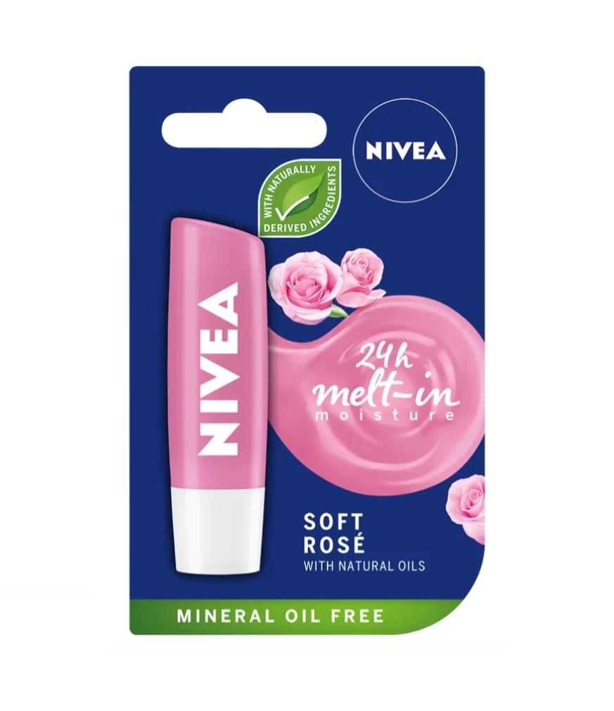 Balsam de buze Soft Rose cu Uleiuri naturale, 5.5 ml, Nivea