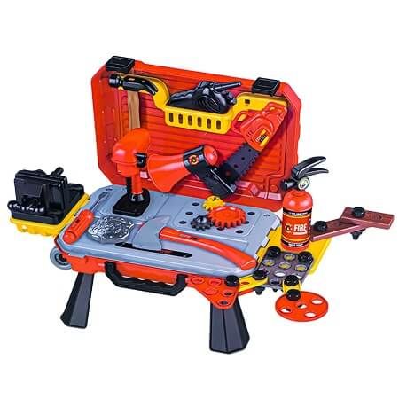 Cauti cadoul perfect pentru micutul tau mester caruia ii place sa lucreze cu unelte in atelier Cumpara-i propria lui masa de lucru Masa cu unelte va fi un cadou excelent de Craciun pentru copilul tau care va avea de acum propriile unelte pentru joaca. Jucaria dezvolta abilitatile manuale ale copilului si se va ocupa de distractia copilului timp de cateva ore Caracteristici Masa este echipata cu unelte precum suruburi piulite fierastrau ciocan burghiu si surubelnite. Sub blatul principal de lucru sunt compartimente pentru cele mai mici piese - la fel ca pe masa de lucru a unui adult Fiecare unealta isi are locul sau. Avertizare Aceasta jucarie contine piese mici din silicon. In cazul putin probabil al inghitirii unor astfel de piese consultati de urgenta un specialist. Produsul este nou si comercializat in ambalajul original al producatorului. Imaginile de pe site au caracter informativ. Ambalajul trebuie indepartat recuperat si aruncat de catre un adult inainte de a se da spre utilizare copilului. Nu lasati ambalajele produselor la indemana copiilor. Se recomanda utilizarea produsului sub supravegherea unui adult. Produsul poate contine piese mici care se pot inghiti sau inhala de cei mici existand pericolul de sufocare sau nu este potrivita copiilor mai mici de 3 ani. Pastrati instructiunile si etichetele pentru referinte viitoare. Pastrati produsul departe de foc si nu il lasati in preajma temperaturilor ridicate si a umiditatii. Nerecomandat copiilor cu varsta mai mica de 3 aniSpecificatii