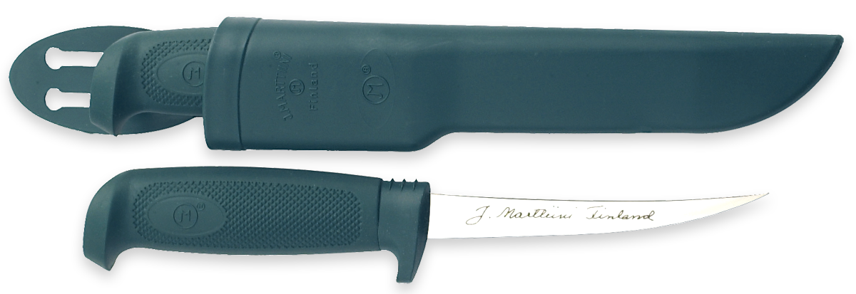 Cutit pentru filetat cu maner din cauciuc si lama flexibila din otel inoxidabil. Este potrivit pentru filetarea pestilor de dimensiuni mici ca pastravul si bibanul.