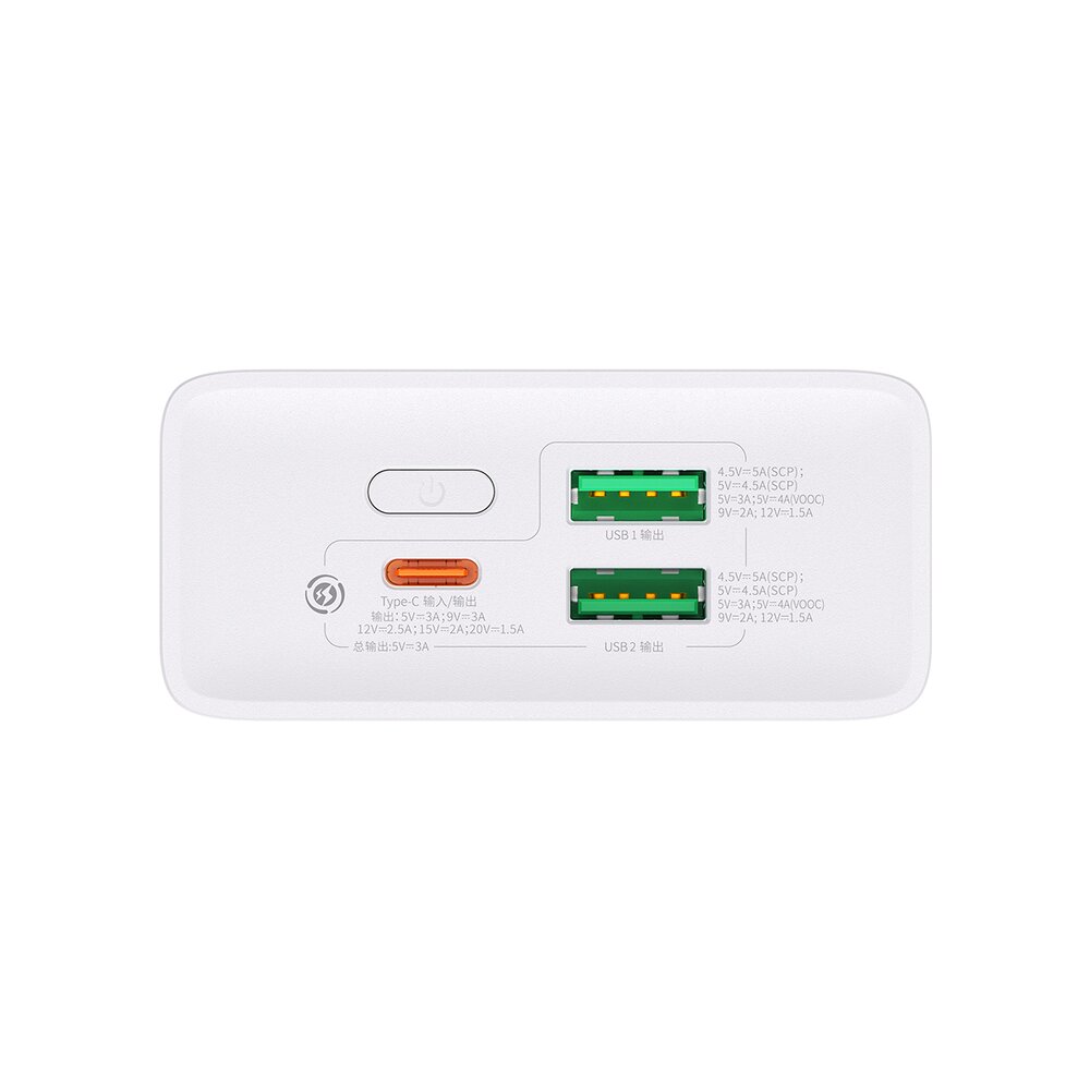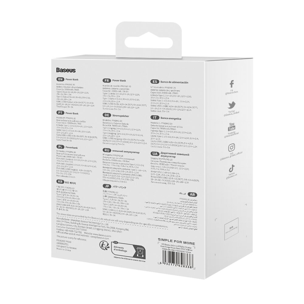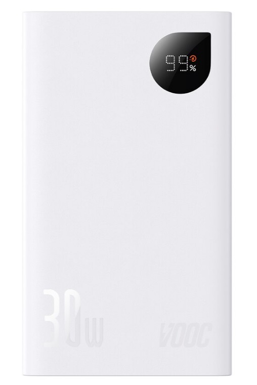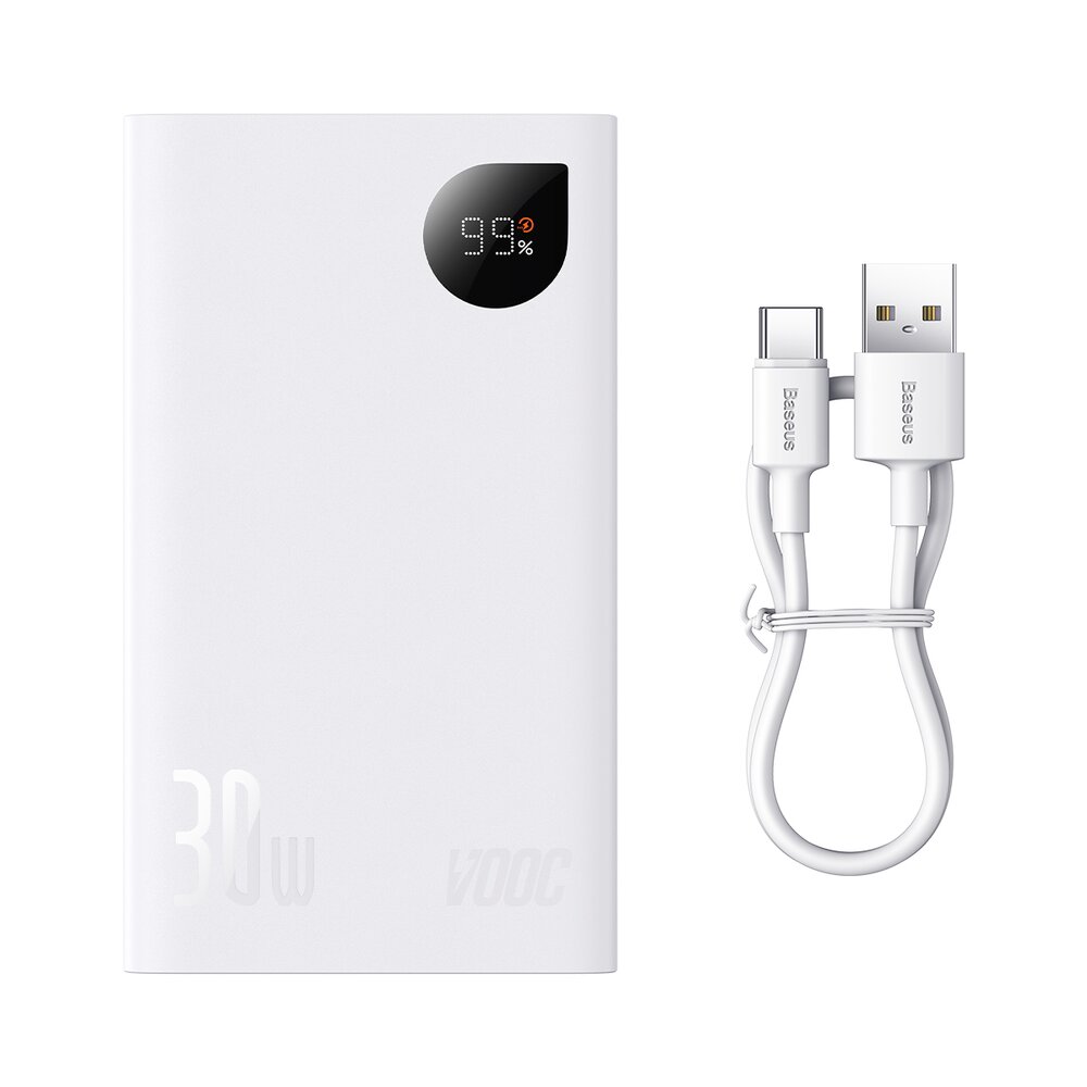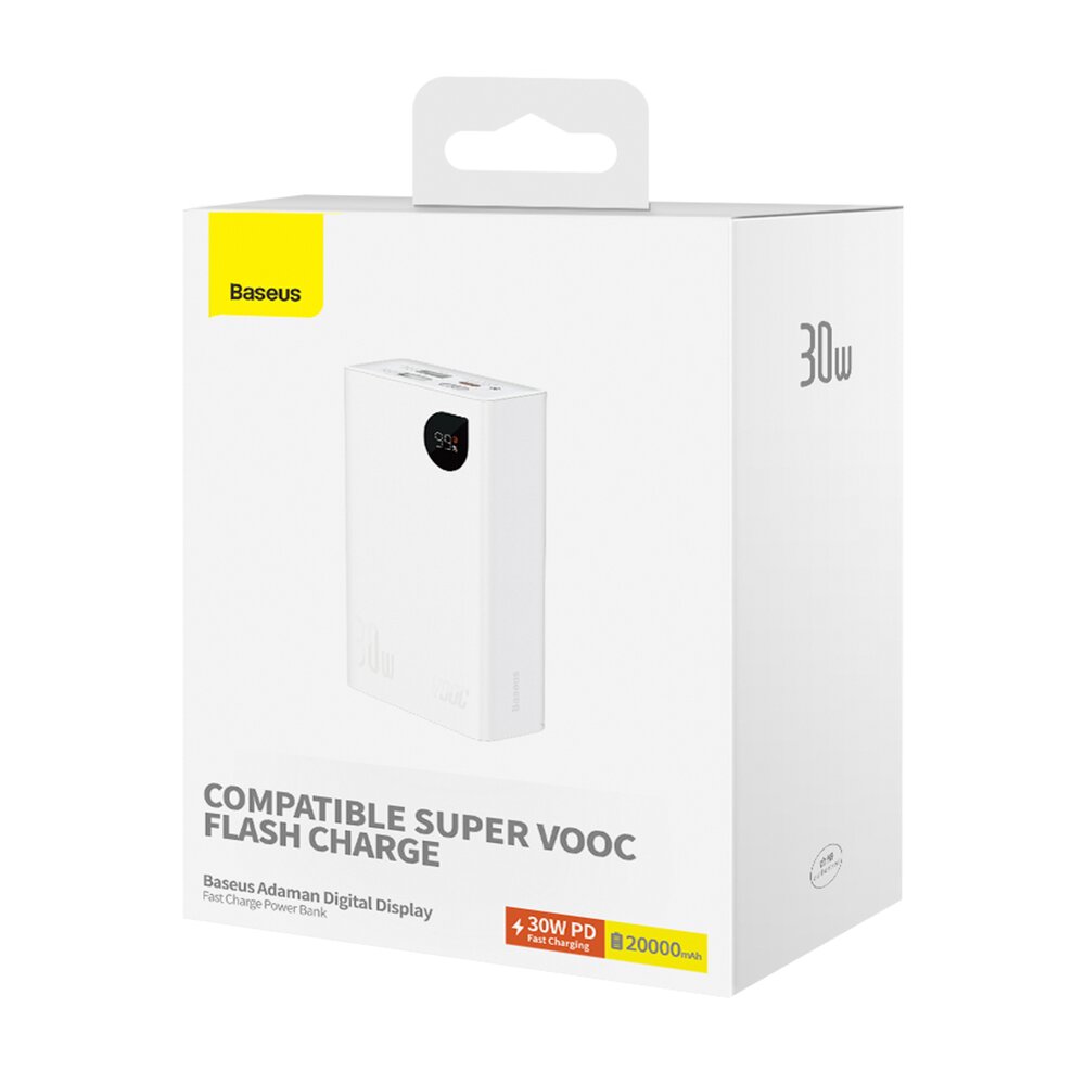Baterie externa Baseus Adaman2 Digital Display, Incarcare rapida, 20000mAh, 30W VOOC Edition, cablu USB-A la USB-C inclus Alb