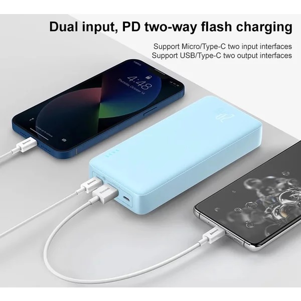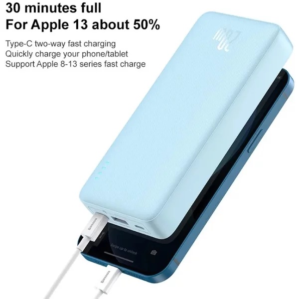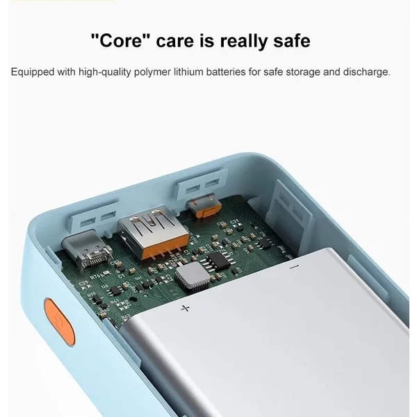 Cu bateria externa Baseus Airpow nu trebuie sa cauti niciodata o priza din nou in miscare. Cu power bank-ul in buzunar, iti poti incarca complet telefonul de pana la 4 ori. Are o capacitate de 20.000 mAh. De asemenea, bateria externa incarca rapid bateria a doua dispozitive in acelasi timp. Incarcatorul are un port USB-C si un port USB-A. Baseus Airpow are o capacitate de incarcare de pana la 20 W si accepta tehnici de livrare a energiei si de incarcare rapida. De exemplu, dispozitivele precum iPhone 13 sunt incarcate la 60% in 30 de minute.