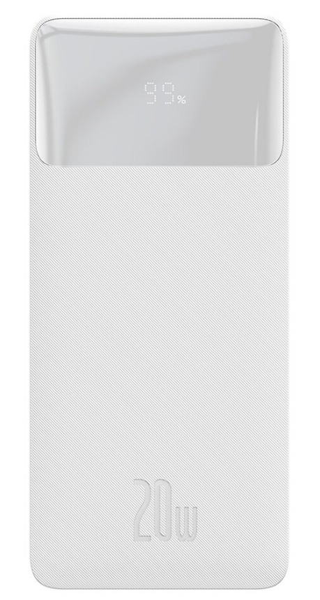 Baterie externa Baseus Bipow Digital Display, 10.000 mAh, 20W, 2x USB-A, 1x USB-C PD, cablu USB-A la microUSB inclus Alb