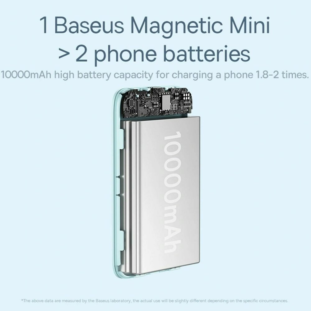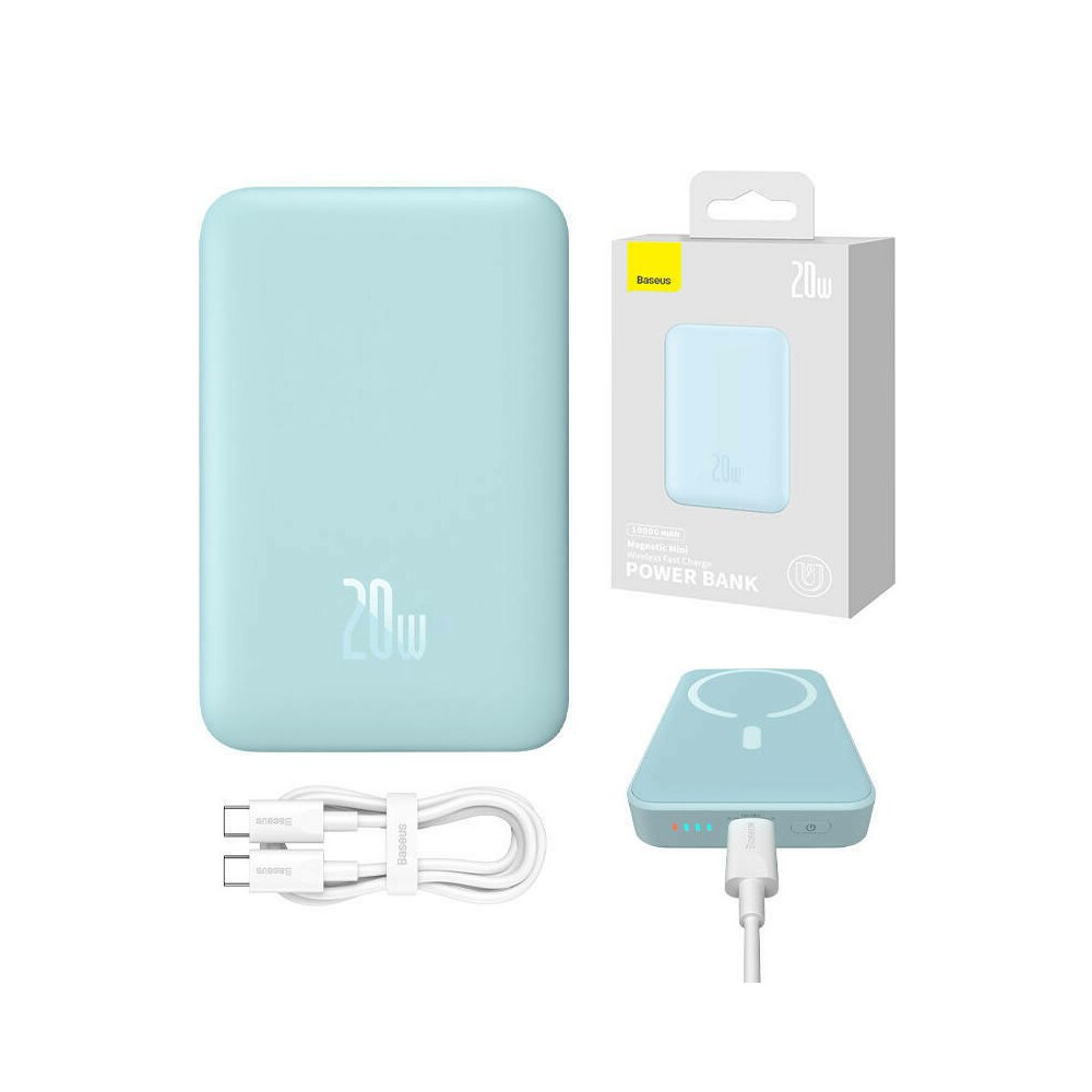 Baterie externa Baseus Magnetic Mini Wireless, 10.000 mAh, Incarcare rapida, 20W, cablu USB-C inclus Albastru