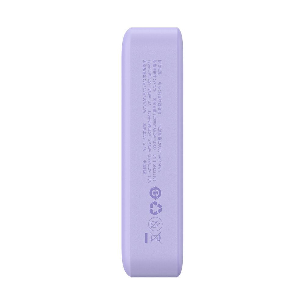 Baterie externa Baseus Magnetic Mini Wireless, 20000mAh, Incarcare rapida, 20W, cablu USB-C inclus Violet