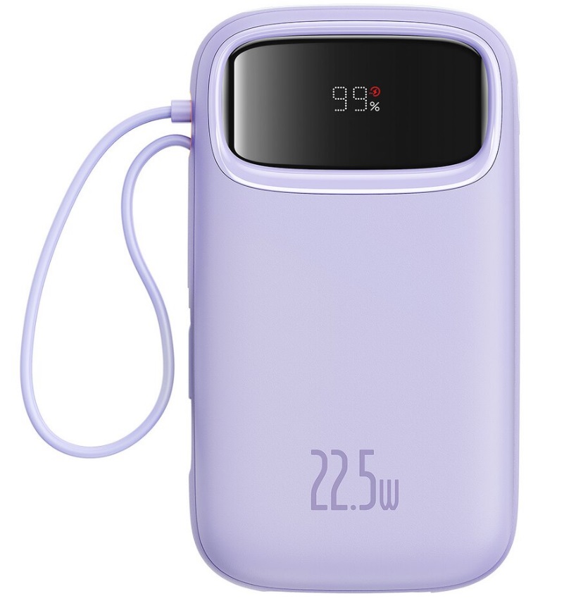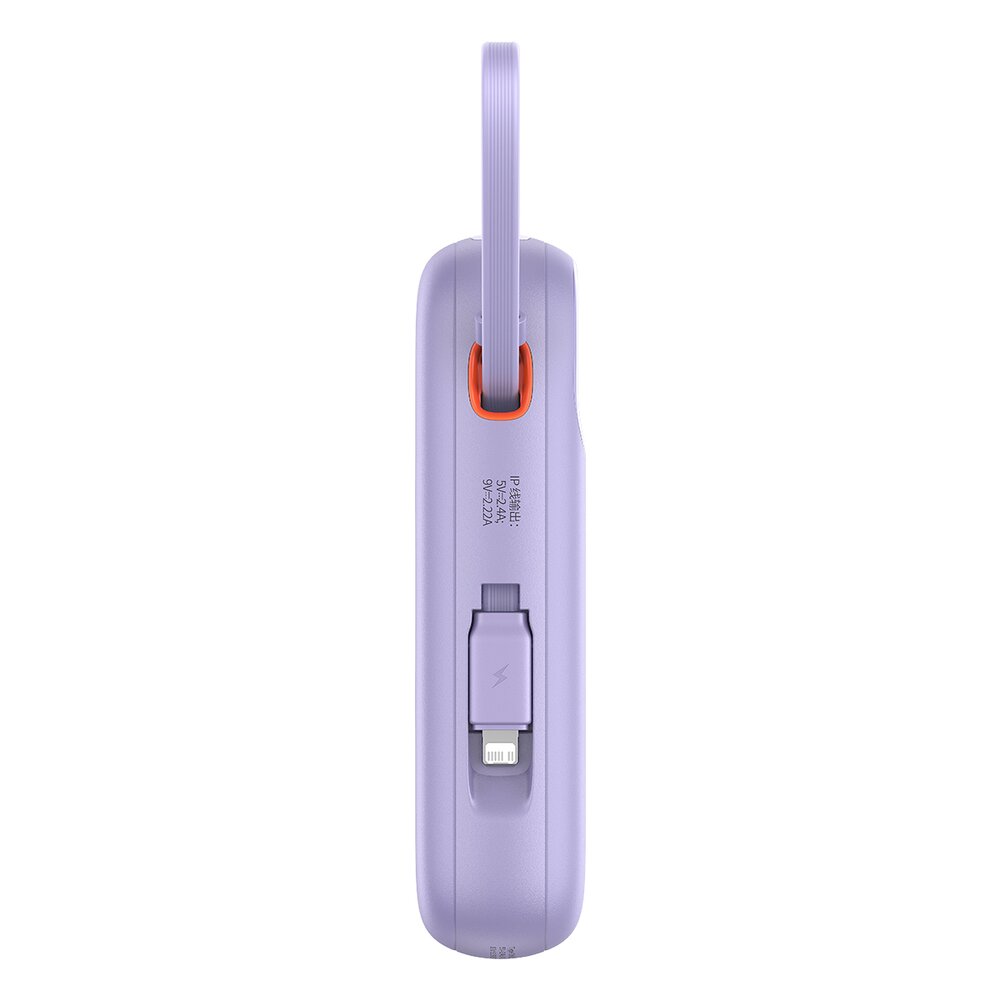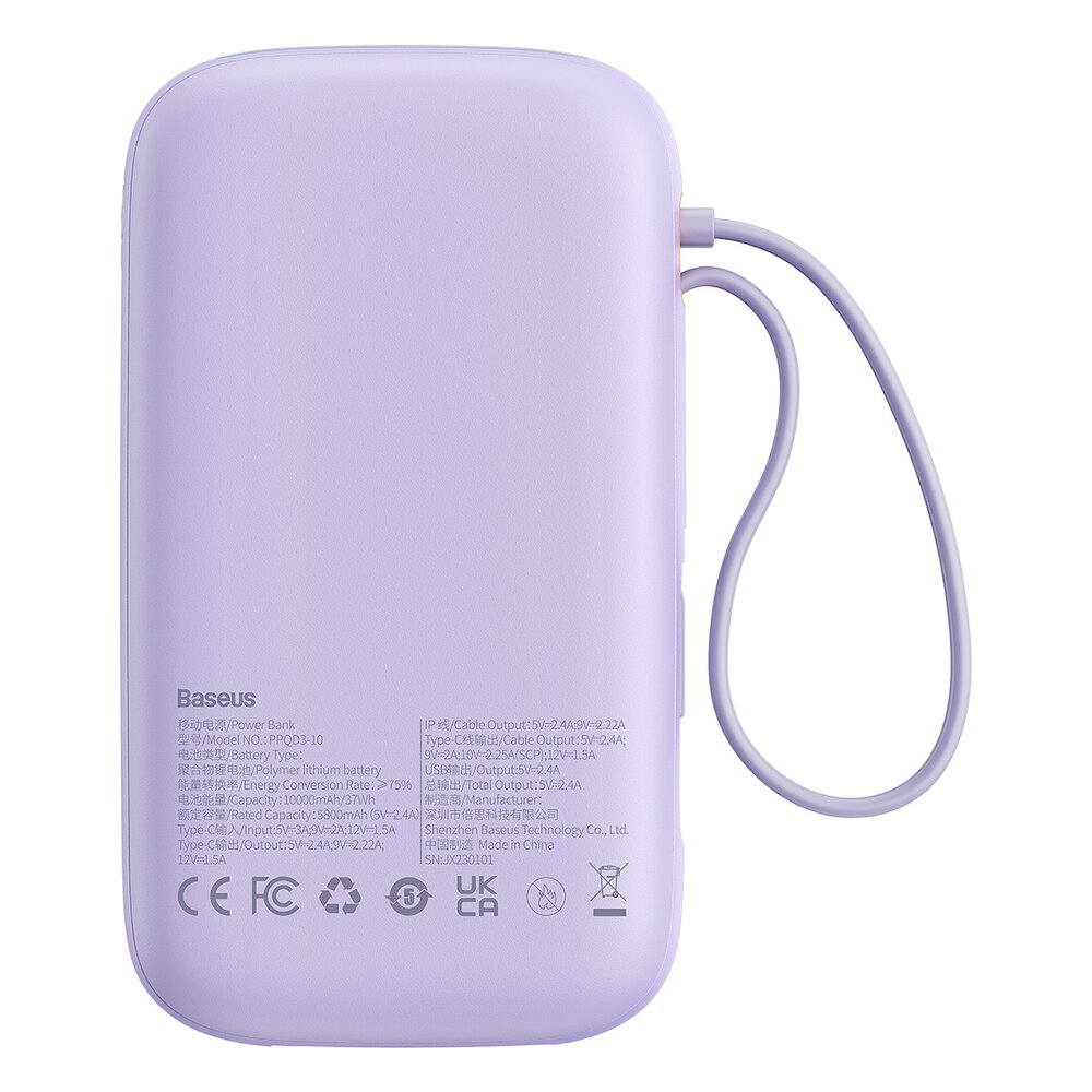 Baterie externa Baseus Qpow2, 10.000 mAh, cablu dual USB-C si Lightning incorporat, Incarcare rapida, 22.5W, Digital Display Violet