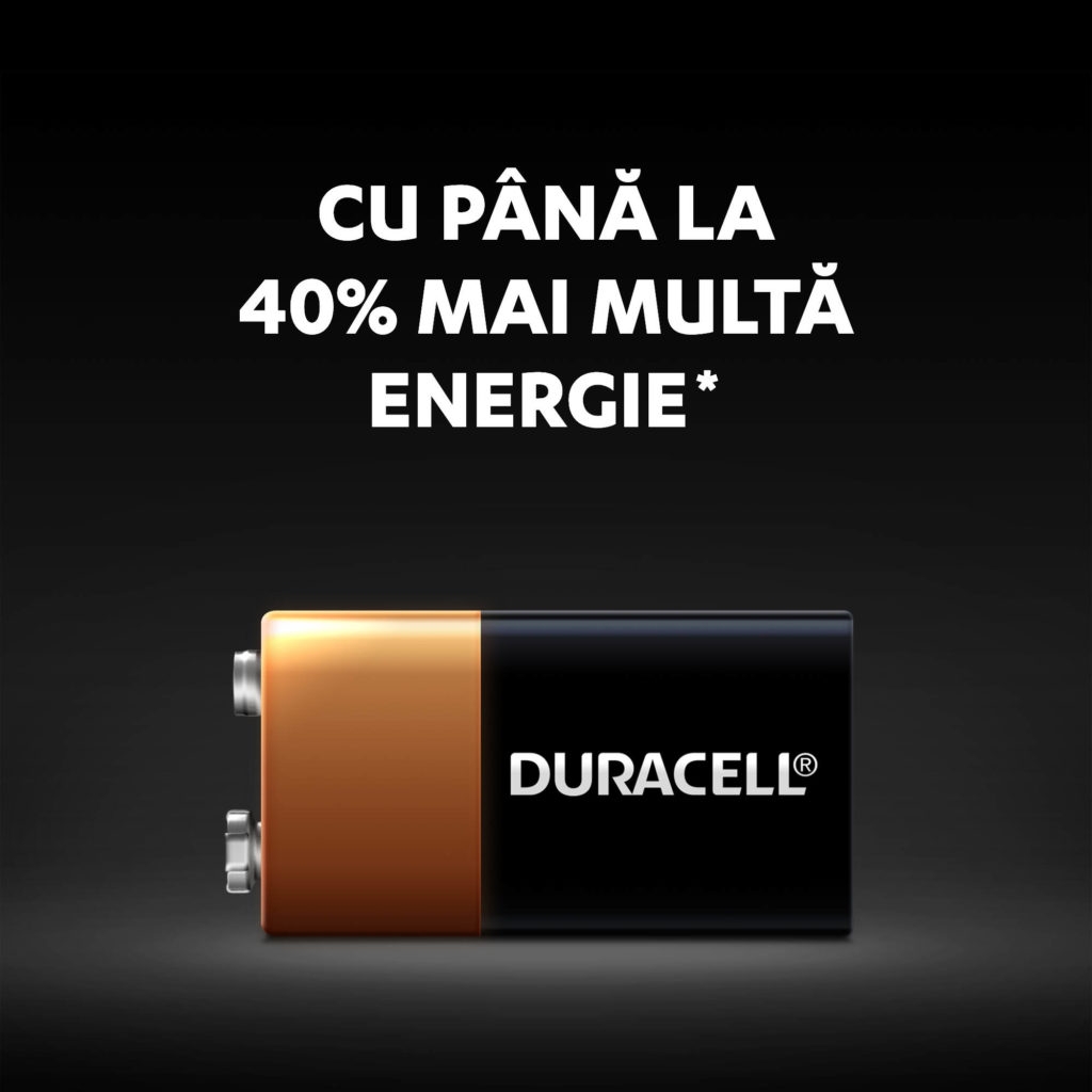 Duracell ofera o gama larga de baterii pentru dispozitive electronice care necesita o sursa de alimentare fiabila. Bateriile Duracell 9V sunt baterii alcaline multifunctionale, ideale pentru alimentarea fiabila a dispozitivelor de zi cu zi, care uneori necesita o alimentare electrica. Performanta poate varia in functie de dispozitiv si aplicatie. Depozitate la temperatura camerei, tehnologia Duralock ofera incarcare de pana la 10 ani pentru bateriile neutilizate. Bateriile fac dispozitivul dumneavoastra de incredere, astfel incat sa va puteti bucura de libertatea oferita de dispozitiv. Bateriile Duracell sunt cea mai buna alegere daca aveti nevoie de performante fiabile si ridicate pentru dispozitivele dumneavoastra folosite in viata de zi cu zi, cum ar fi jocuri motociclete, lanterne, console jocuri, telecomenzi.
