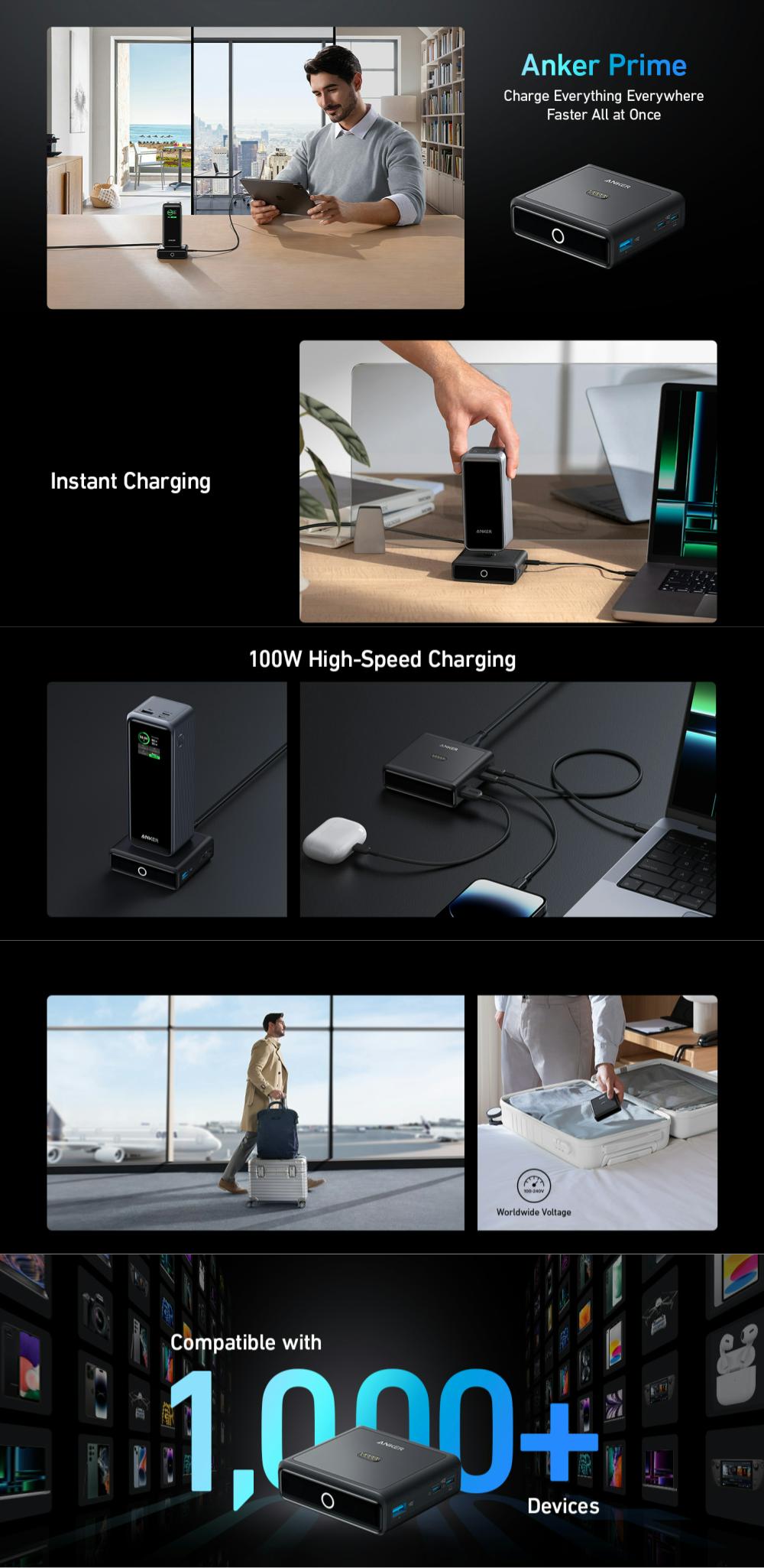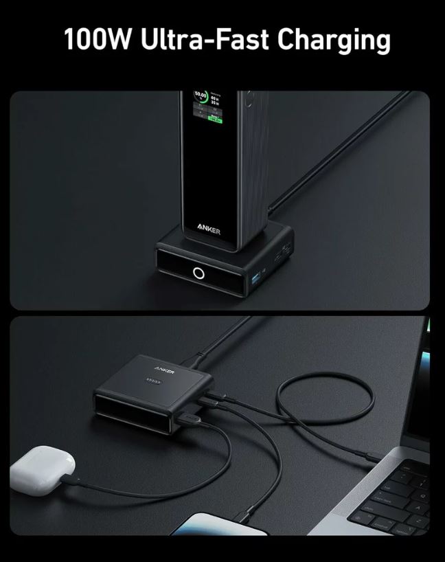 Baza de incarcare Anker, pentru baterii externe Anker Prime, 100W, 4 porturi, GaN, Negru