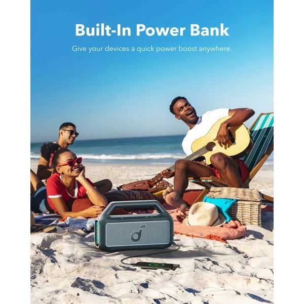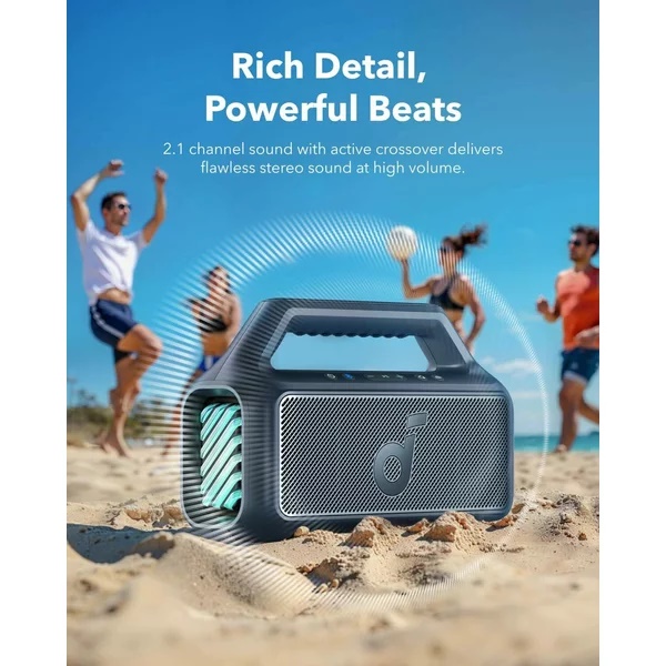 Boxa portabila Anker Soundcore Boom 2, 80W, BassUp 2.0, IPX7, Lumini RGB, Bluetooth 5.3, Albastru