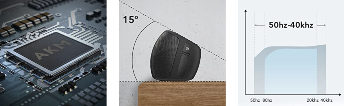 Difuzoarele boxei portabile Anker SoundCore Motion+ sunt inclinate in sus, la un unghi de 15°, pentru a umple intreaga incapere cu muzica.