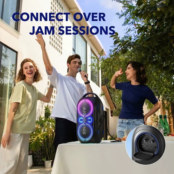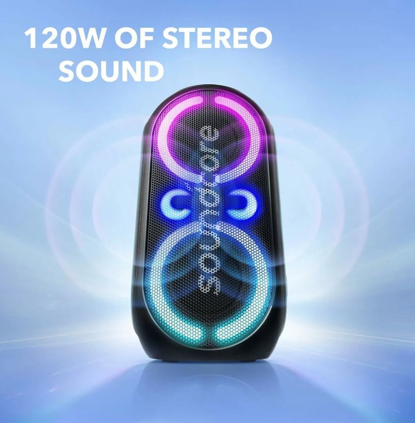 Boxa portabila Anker Soundcore Rave Party 2, cu doua difuzoare si doua tweetere, cu o putere totala de 120W pentru sunet puternic si de calitate.