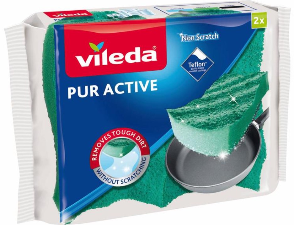 Buretele de vase Vileda Pur Active este special creat pentru vasele din teflon, fiind performant si durabil.