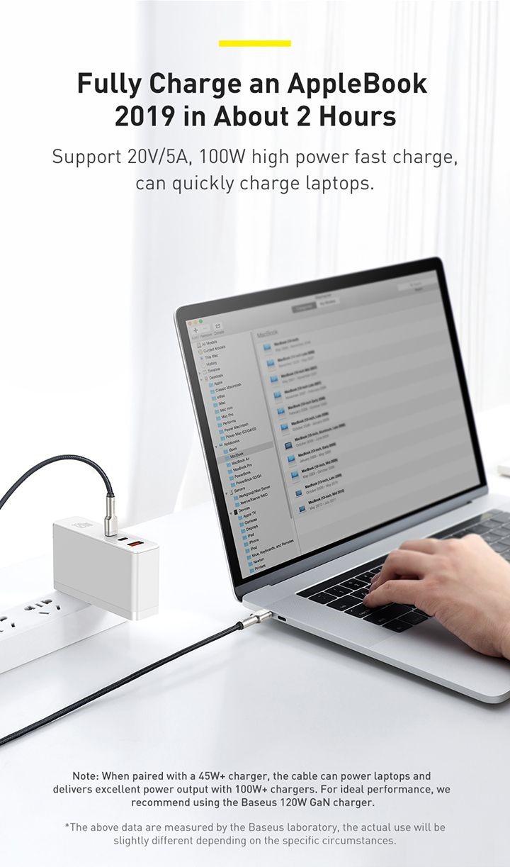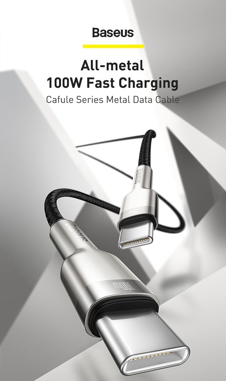 Cablu Baseus Cafule Series Metal USB-C la USB-C, 100W, 1m Alb