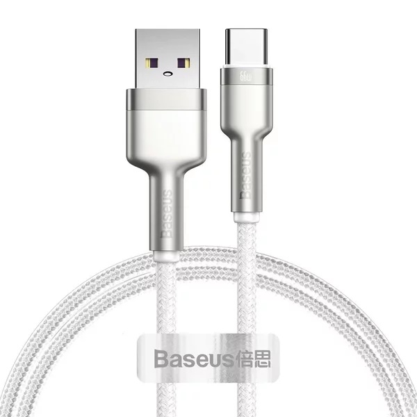 Cablu Baseus Cafule Series Metal USB la USB-C, 66 W, 2 m, alb