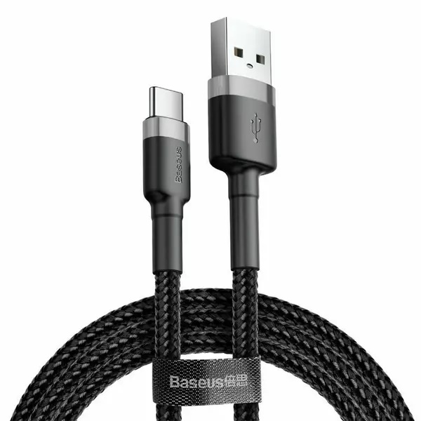 Cablu Baseus Cafule, USB la USB-C, Quick Charge , 2A, 2m Gri + Negru