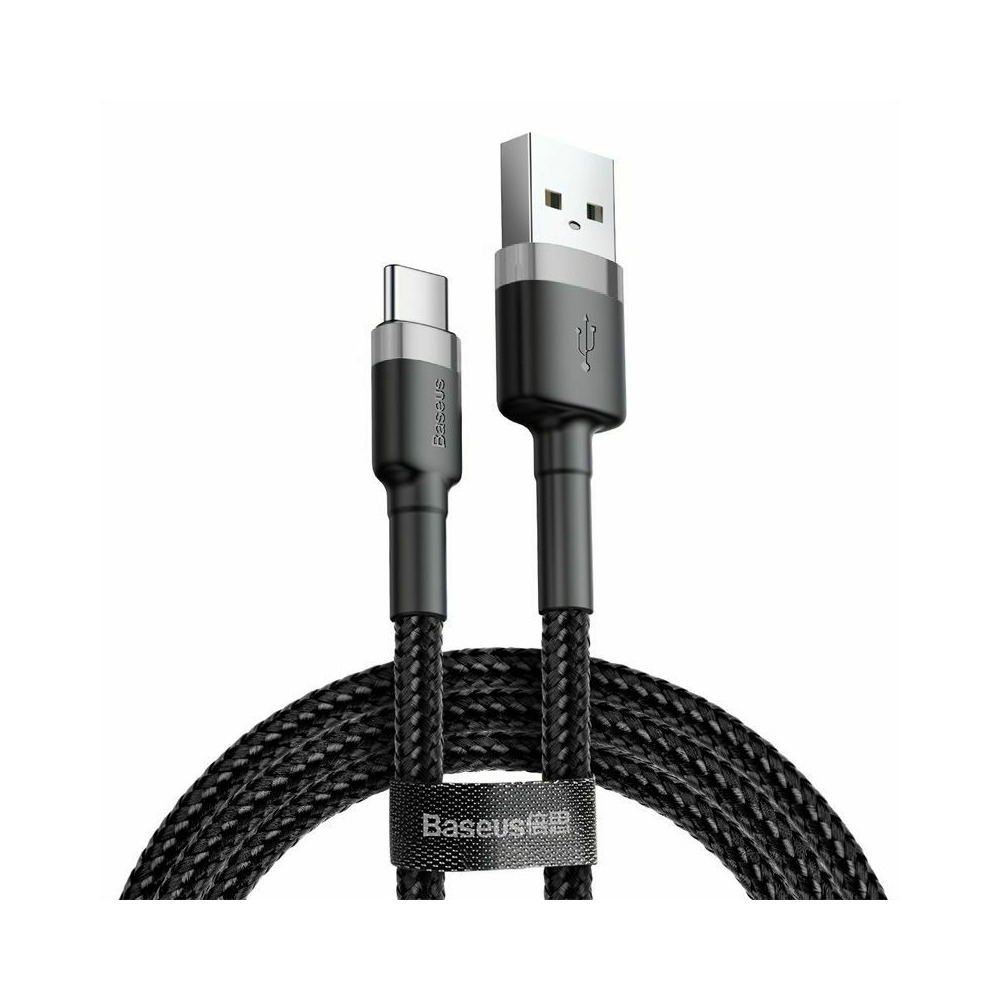 Cablu Baseus Cafule, USB la USB-C, Quick Charge, 3A, 1m Gri + Negru