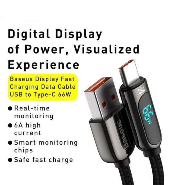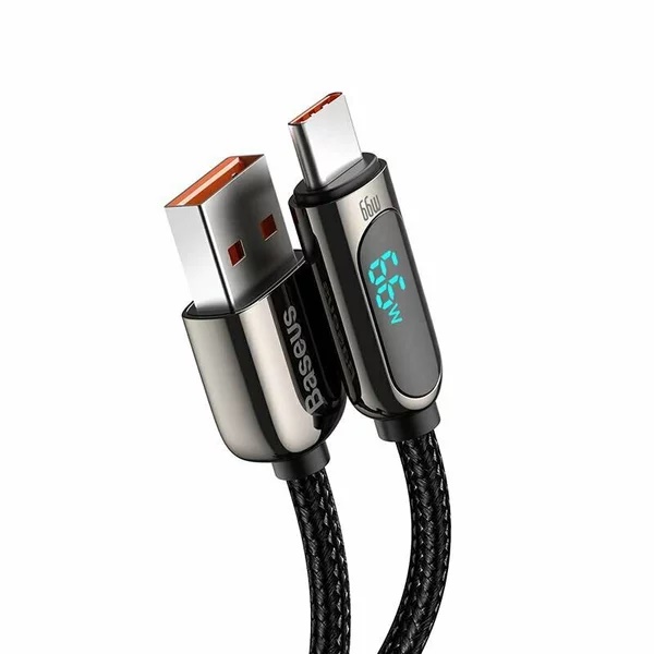 Cablu Baseus Display, USB la USB-C, Fast Charging, 66 W, 2 m, Negru