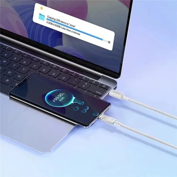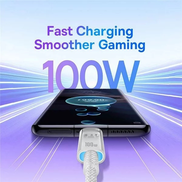 Cablu Fast Baseus pentru incarcare si transmitere de date cu conectori USB-C - USB-C. Accepta functia de incarcare rapida Power Delivery 100 W.