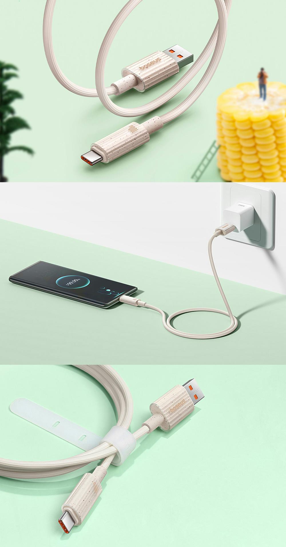 Cablul Baseus a fost creat din plastic biodegradabil si este rezistent la deteriorare. In plus, va permite sa reinnoiti rapid energia echipamentului dvs. si este compatibil cu tot felul de dispozitive. Puteti conecta cu succes un smartphone, laptop, tableta sau consola de jocuri la acesta. De asemenea, ofera rate de transfer de date de 480 Mbps si previne supraincalzirea echipamentelor.