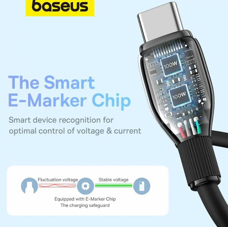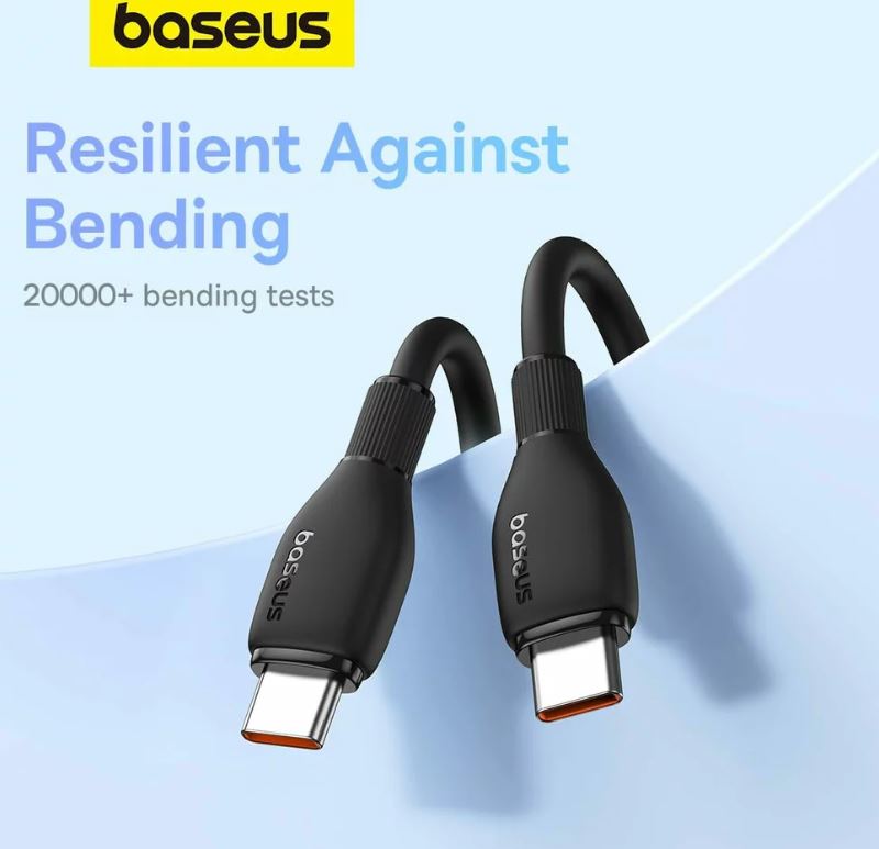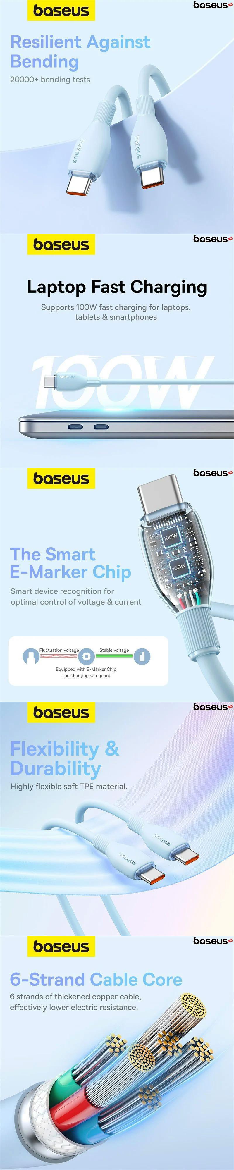 Cablul Baseus Pudding Series Type-C la Type-C 100W are culori elegante si un design unic cu o carcasa transparenta.