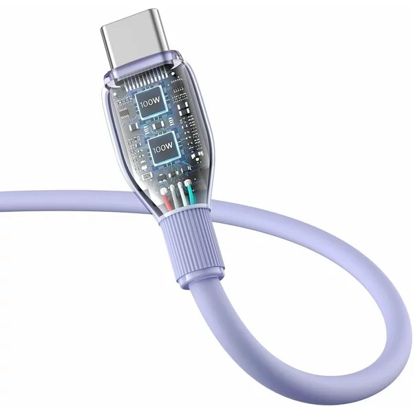 Cablul USB Type-C 100W din seria Baseus Pudding are culori elegante si un design unic cu o carcasa transparenta.