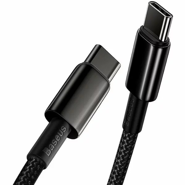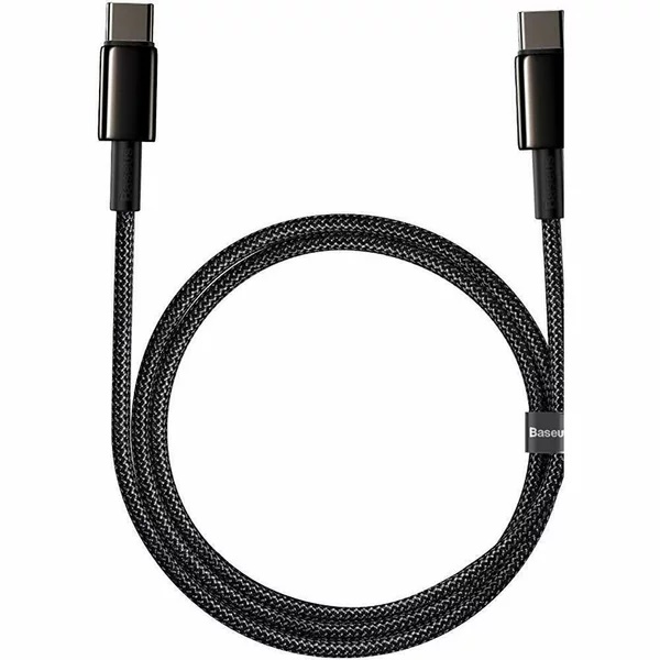 Cablu Baseus Tungsten Gold, USB-C la USB-C, 100W, Fast Charging, 1m, Negru