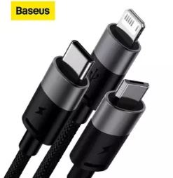 Cablu USB - Lightning / Micro / Type-C cu o lungime maxima de 1,20 m. Acceptaincarcarea cu un curent total de 3,5 A(2 A cand este conectat un dispozitiv) sitransmisie de date de 480 Mbs (doar pe conectorul Lightning).