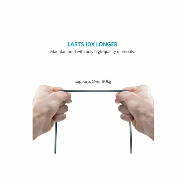 Cablul Micro USB Powerline+ Nylon de la Anker este incredibil de rezistent: exteriorul nailonului dublu-impletit, miezul din fibra aramida de inalta calitate si conectorii prelucrati cu laser echipeaza PowerLine + cu rezistenta superioara.