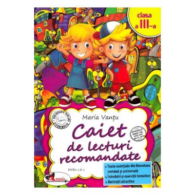 Lectura unor texte fundamentale, atat ale literaturii nationale, cat si ale celei universale, contribuie la formarea deprinderilor de comunicare in limba romana. Din acest punct de vedere, Caietul de lecturi recomandate pentru clasa a III-a raspunde cerintelor scolii romanesti.