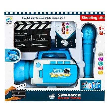 Jucarie de rol reporter cameraman microfon camera de filmat ardezie de film si card de jurnalist educational si interactiv multicolor Caracteristici Microfonul detasabil poate fi atasat la partea superioara a camerei alimentat cu baterie 3xAA nu este inclus dimensiunile camerei cu oglinda desfacuta si microfonul atasat 17x15x14 cm camera emite semnale sonore si se aprinde oglinda de deschidere incorporata in camera alegerea scenelor inregistrate ferma parc concert loc de joaca gradina zoologica plaja Avertizare - Acest produs prin rupere in cazul putin probabil al inghitirii unor astfel de piese consultati de urgenta un specialist - Produsul este nou si comercializat in ambalajul original al producatorului - Imaginile de pe site au caracter informativ - Nuanta tonul si intensitatea culorii pot varia in functie de monitor - Ambalajul trebuie indepartat recuperat si aruncat de catre un adult inainte de a se da spre utilizare copilului - Nu lasati ambalajele produselor la indemana copiilor - Se recomanda utilizarea produsului sub supravegherea unui adult - Produsul poate contine piese mici care se pot inghiti sau inhala de cei mici existand pericolul de sufocare sau nu este potrivita copiilor mai mici de 3 ani - Pastrati instructiunile si etichetele pentru referinte viitoare - Pastrati produsul departe de foc si nu il lasati in preajma temperaturilor ridicate si a umiditatii - Nerecomandat copiilor cu varsta mai mica de 3 aniSpecificatii