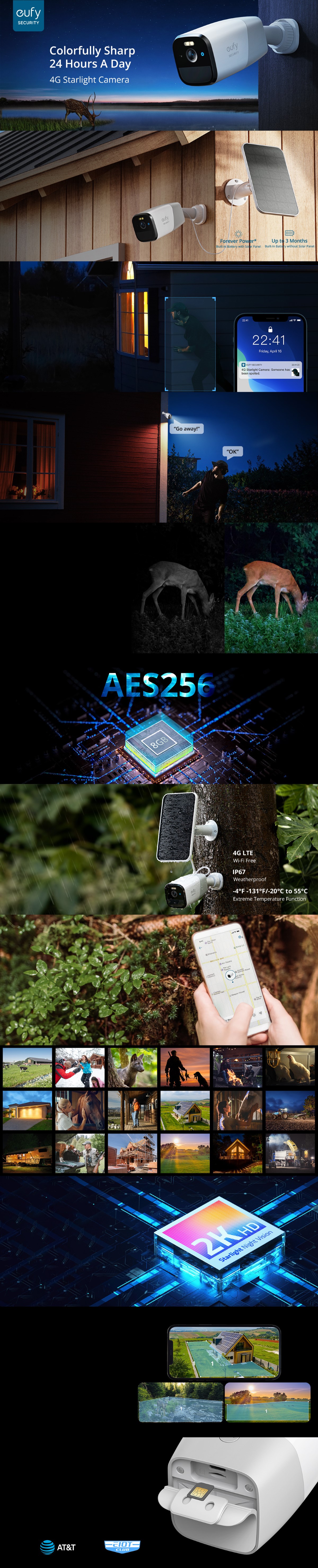 Nu aveti Wi-Fi? Nu sunt prize in zona? eufy 4G LTE Starlight Camera este special conceputa pentru astfel de scenarii. Descoperaprima camera de securitate 4G care dispune atat de rezolutie 2K HD, cat si de viziune nocturna Starlight.