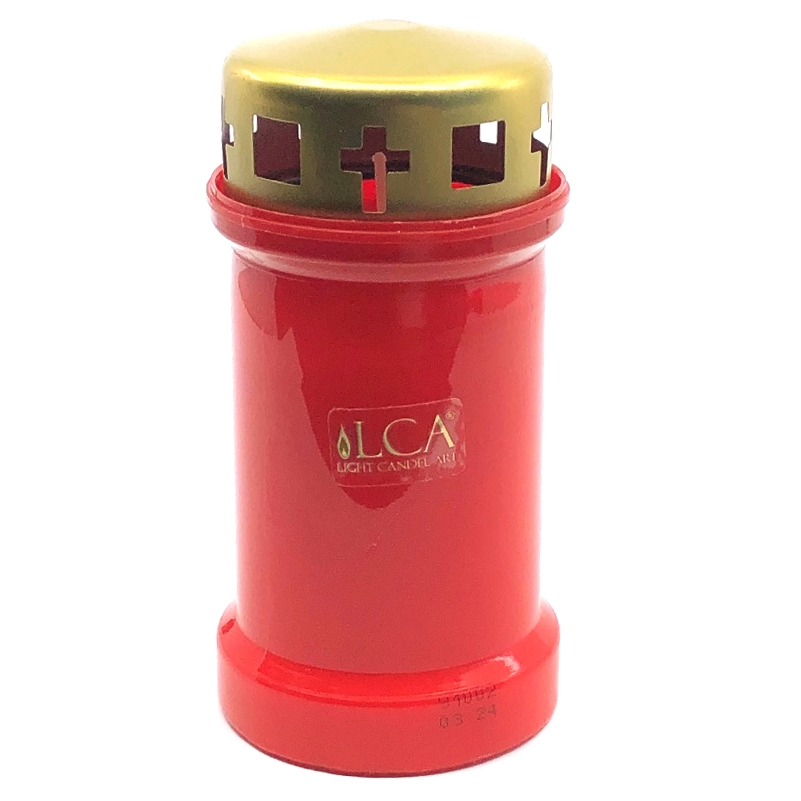 Candela din plastic rosie cu capac Nr. 3, Maica Domnului, durata 70 ore, Light Candel Art