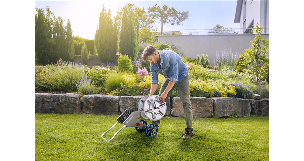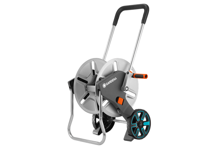 Caruciorul metalic CleverRoll M este deosebit de robust si poate suporta chiar si cea mai mare presiune din gradina. Permite economisirea spatiului de depozitare a furtunului de gradina si este convenabil de utilizat. Furtunul poate fi rulat fiabil cu ajutorul manivelei ergonomice din plastic cu componente din plastic moale. Datorita piciorului pliabil, este stabil. Forma deosebita si pozitionarea vizibil inalta a rotilor ofera stabilitate. Pentru depozitare compacta piciorusul se indoaie simplu, manerul se coboara iar manivela se pliaza.