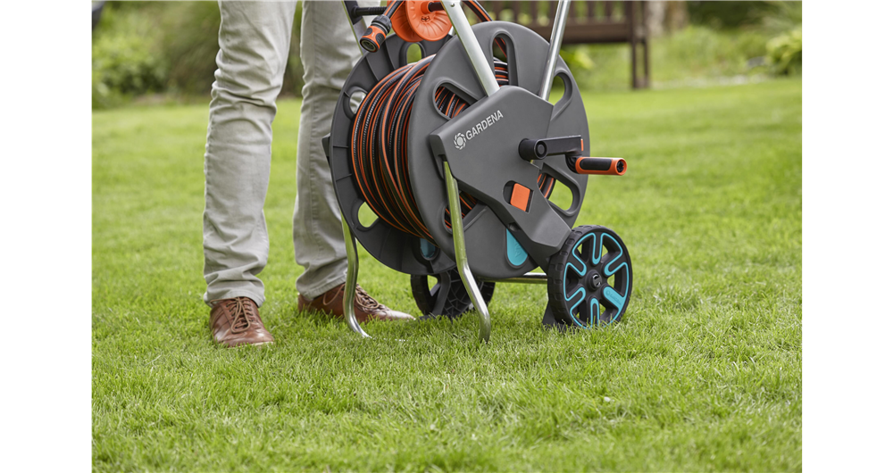 Caruciorul pentru furtun AquaRoll L Easy GARDENA permite depozitarea compacta a furtunului de gradina si este convenabil de utilizat. Cu manerul ergonomic cu componente din plastic moale si ghidajul furtunului robust, furtunul poate fi rulat usor. Rezistenta la inghet si garantia de 5 ani asigura calitatea maxima "Made in Germany".Specificatii