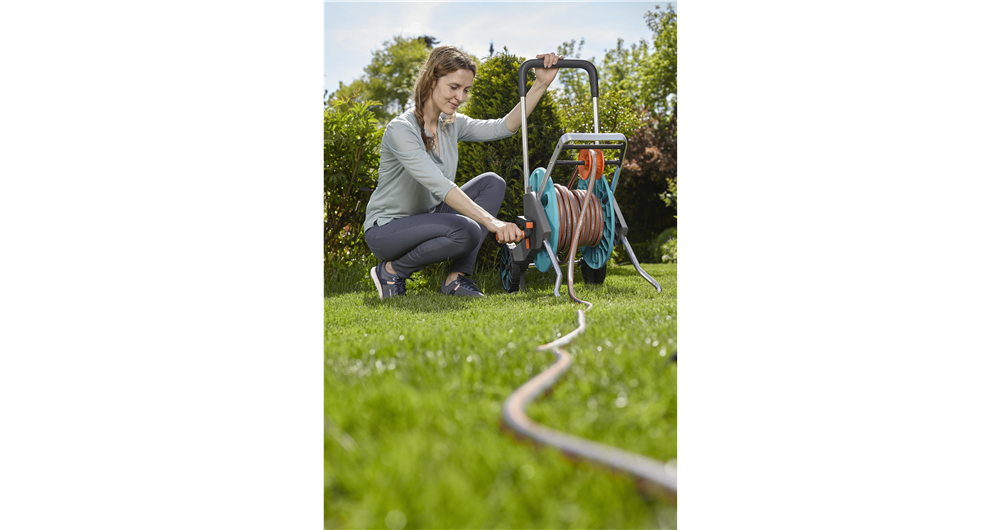 Caruciorul pentru furtun CleverRoll M Easy GARDENA permite depozitarea compacta a furtunului de gradina si este convenabil de utilizat. Cu manerul ergonomic cu componente din plastic moale si ghidajul furtunului robust, furtunul poate fi rulat usor. Rezistenta la inghet si garantia de 5 ani asigura calitatea maxima "Made in Germany".