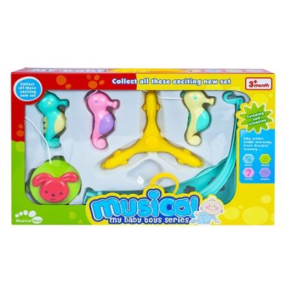 Jucariile suspendate si care se misca sunt foarte atractive si starnesc curiozitatea bebelusului dezvoltandu-i abilitatile. Caracteristici - Setul contine supotul 3 figurine animalute si un cilindru ce se agata. - Caruselul se fixeaza pe marginea patutului cu ajutorulul surubului de prindere. - Melodia de leagan este activata manual cilindrul suspendat avand mecanismul de functionare prin rotirea cheitei. De asemenea acesta are buton de pornire oprire pentru a putea opri melodia cand copilasul este deranjat. - Caruselul ii ajuta pe cei mici sa isi dezvolte capacitatile vizuale si auditive dar si de coordonare perceptie spatiala si motricitate fina atunci cand incep sa se joace cu jucariile atasate in forma de animalute haioase. - Jucaria este realizata din material plastic textil si metal de calitate non-toxice. - Produsul este ambalat in cutie din carton cu fereastra si maner din plastic. Avertizare Produsul este nou si comercializat in ambalajul original al producatorului. Imaginile de pe acest site au caracter informativ. Produsul nu functioneaza cu baterii. Ambalajul trebuie indepartat recuperat si aruncat de catre un adult inainte de a se da spre utilizare copilului. Nu lasati ambalajele produselor la indemana copiilor. Se recomanda utilizarea produsului sub supravegherea unui adult. Produsul poate contine piese mici care se pot inghiti sau inhala de cei mici existand pericolul de sufocare sau nu este potrivita copiilor mai mici de 3 ani. Pastrati instructiunile si etichetele pentru referinte viitoare. Pastrati produsul departe de foc si nu il lasati in preajma temperaturilor ridicate si a umiditatii. Datorita masurarii manuale a produsului poate exista o diferenta minora fata de dimensiunea reala a produsului.Specificatii