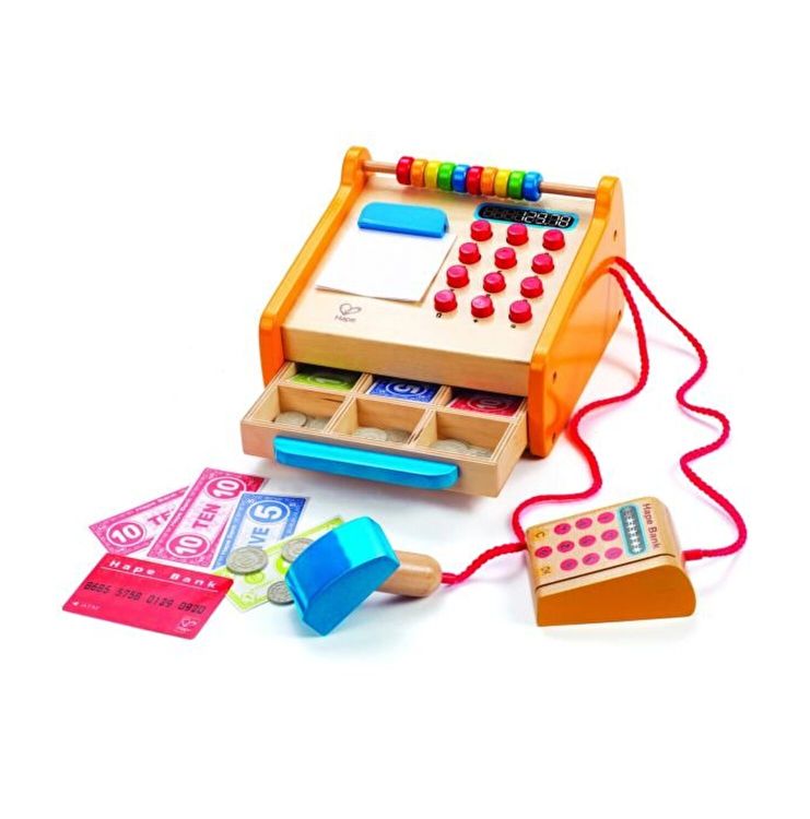 Numerar sau credit? Acesta casa de marcat robusta le permite copiilor sa scaneze un card sau sa plateasca cu bani. Valoare redata: nepretuita. Practicati numararea folosind banii si abacul pentru joc.