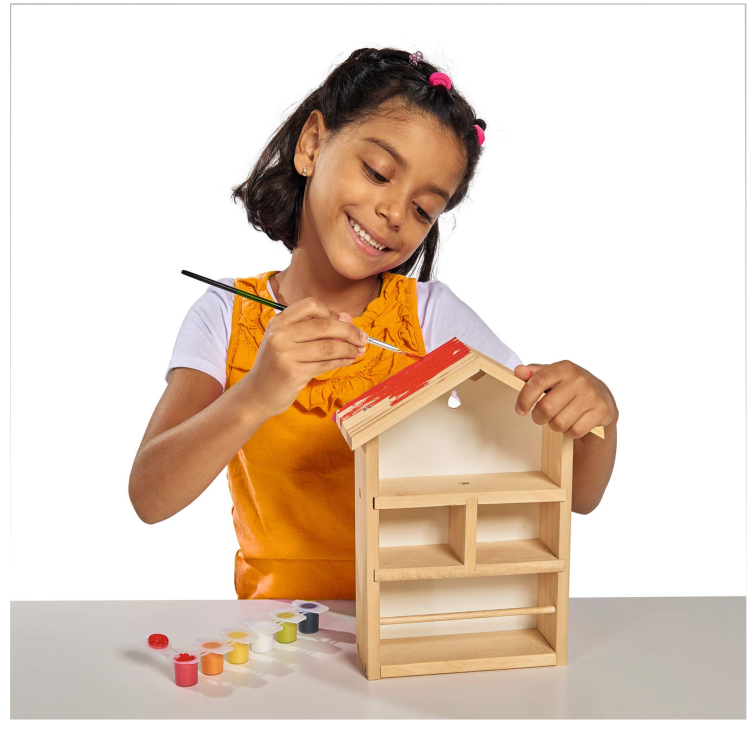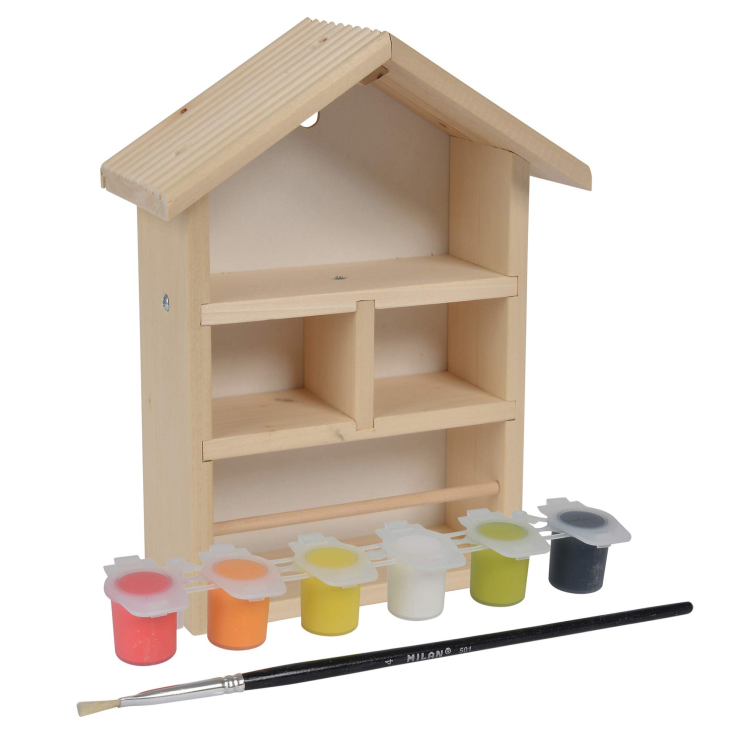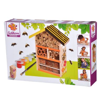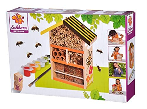Casuta din lemn pentru albine Eichhorn, se poate picta dupa ce se monteaza, cu pensula si vopselurile incluse. Feeding House este recomandat pentru copii de la 6 ani. Acest micut dragut de stupina, este in sine foarte frumos, dar devine si mai frumos atunci cand casa este pictata si decorata. Setul contine partile individuale ale stupinei, precum si suruburile potrivite. Stupina poate fi amenajata in gradina sau atasata la copac cu un dispozitiv integrat in partea din spate a casei. Setul include, de asemenea, o perie si 6 culori coordonate pentru vopsirea casei. Deci, puteti incepe sa pictati, plat, cu modele, puncte, linii sau cu un text. Casa este realizata din lemn de tei de inalta calitate si este potrivita pentru copiii de la 6 ani.