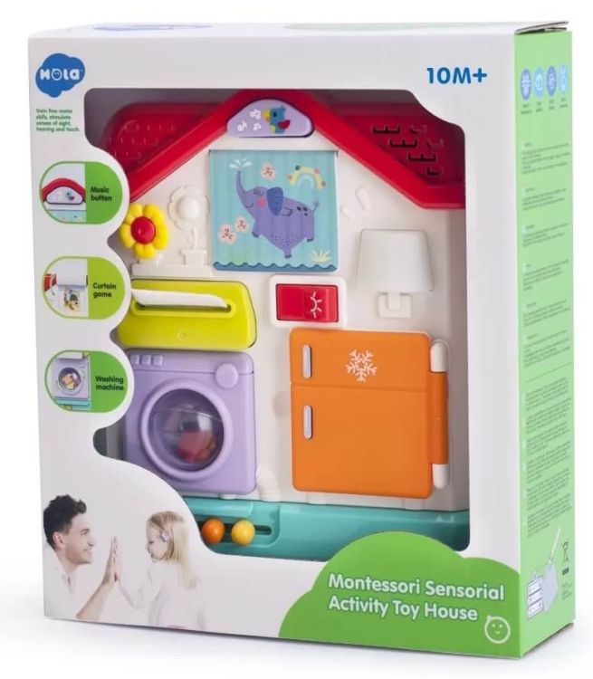 Jucariile Montessori sunt concepute pentru a incuraja invatarea prin joc si pentru a stimula abilitatile de manipulare observatia si imaginatia copilului. Aceste abilitati sunt importante pentru invatarea practica si dezvoltarea copiilor. Apasati butonul de muzica pentru a asculta cele 8 melodii. Efecte sonore amuzante vor fi adaugate melodiilor atunci cand apasati pe masina de spalat sticla de lapte sau cutia de servetele.Specificatii