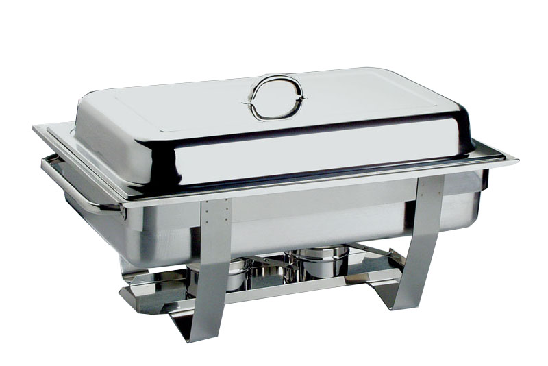 Chafing dish dreptunghiular, cuva GN1/1-h 65mm, capacitate 9 litri, 2 arzatoare, inox polisat